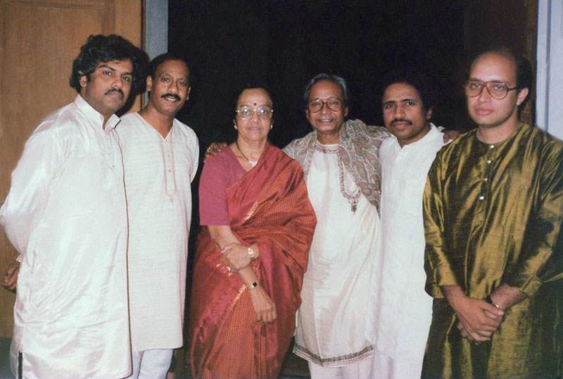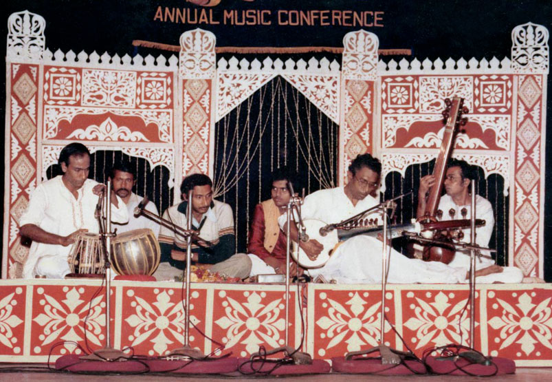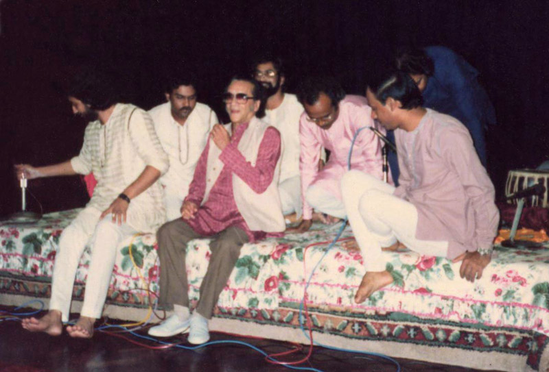 With Pt. Ravi Shankar, Kumar Bose, Tarun Bhattacharya, Vishwa Mohan Bhatt & Daya Shankar – London, 1988